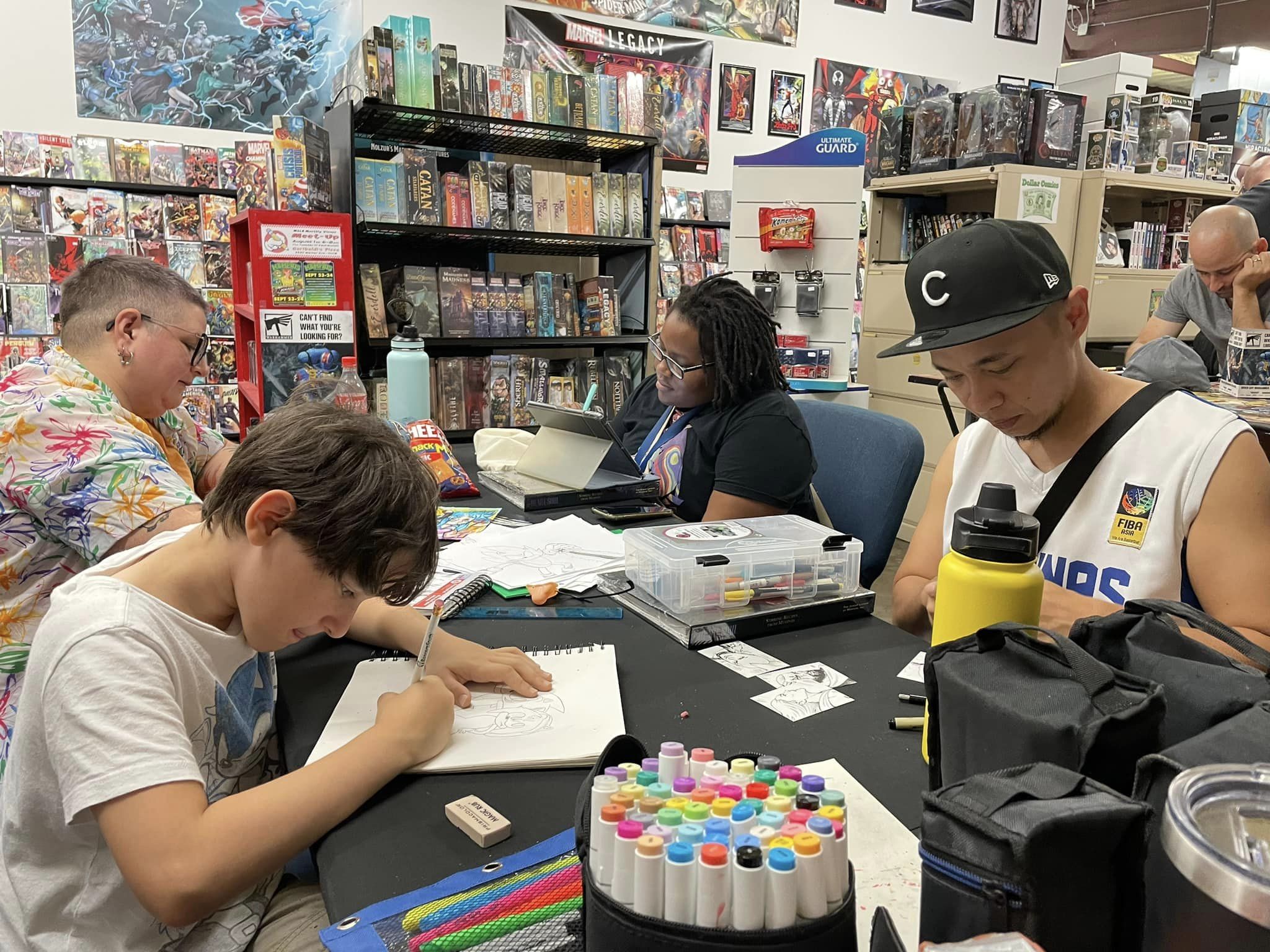 Stay Tooned!‘ for info on our next Satartday. They[re free and open to the public- and we have free art supplies for everyone to use including paper, sketchcards, markers, pencils, and more.