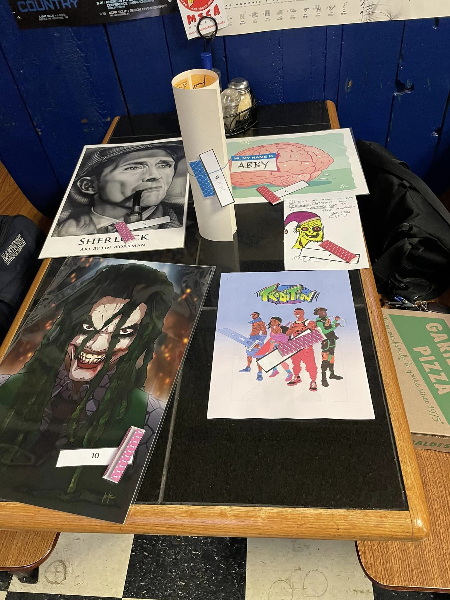 The next gathering is Tuesday, December 2, 2025, we will gather at Garibaldi’s Pizza, 3530 Walker Ave, by the University of Memphis, from 6 – 8 pm.  Some of us show up a little earlier sometimes. Bring art and food money, and we look forward to seeing you there!