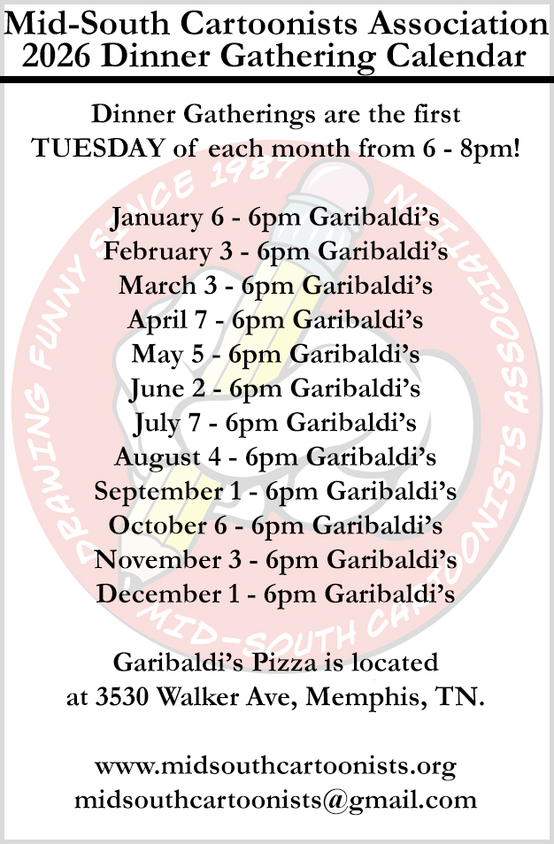 The last event of 2025 is going to be the upcoming Mid-South Cartoonists Association‘s “The Art Of The Game”, which is happening in December 22, 2025 – January 30, 2026 at the Memphis Jewish Community Center on Poplar Avenue near Germantown. Artists’ Reception will be on January 8, 2025 from 5-7pm.