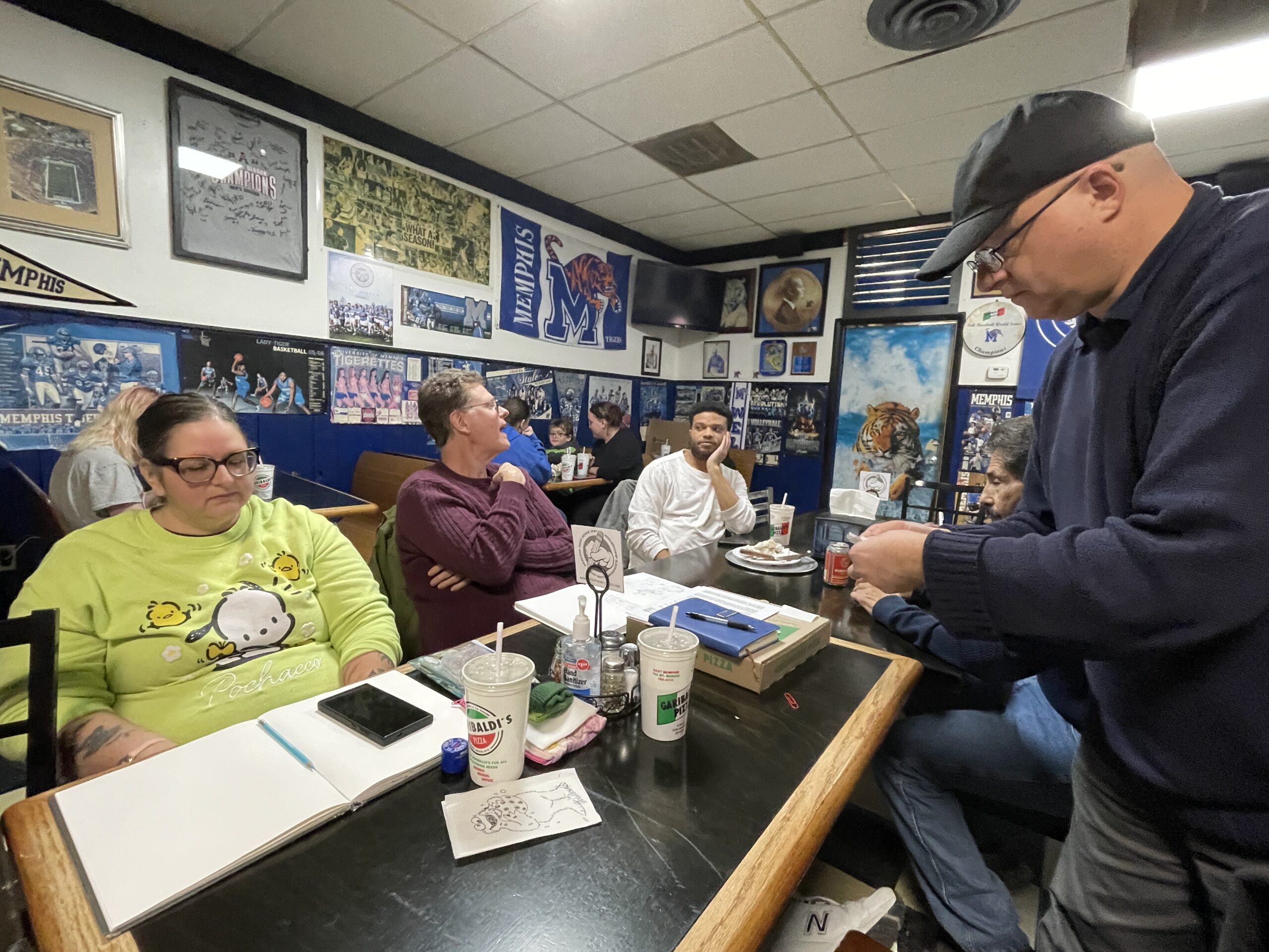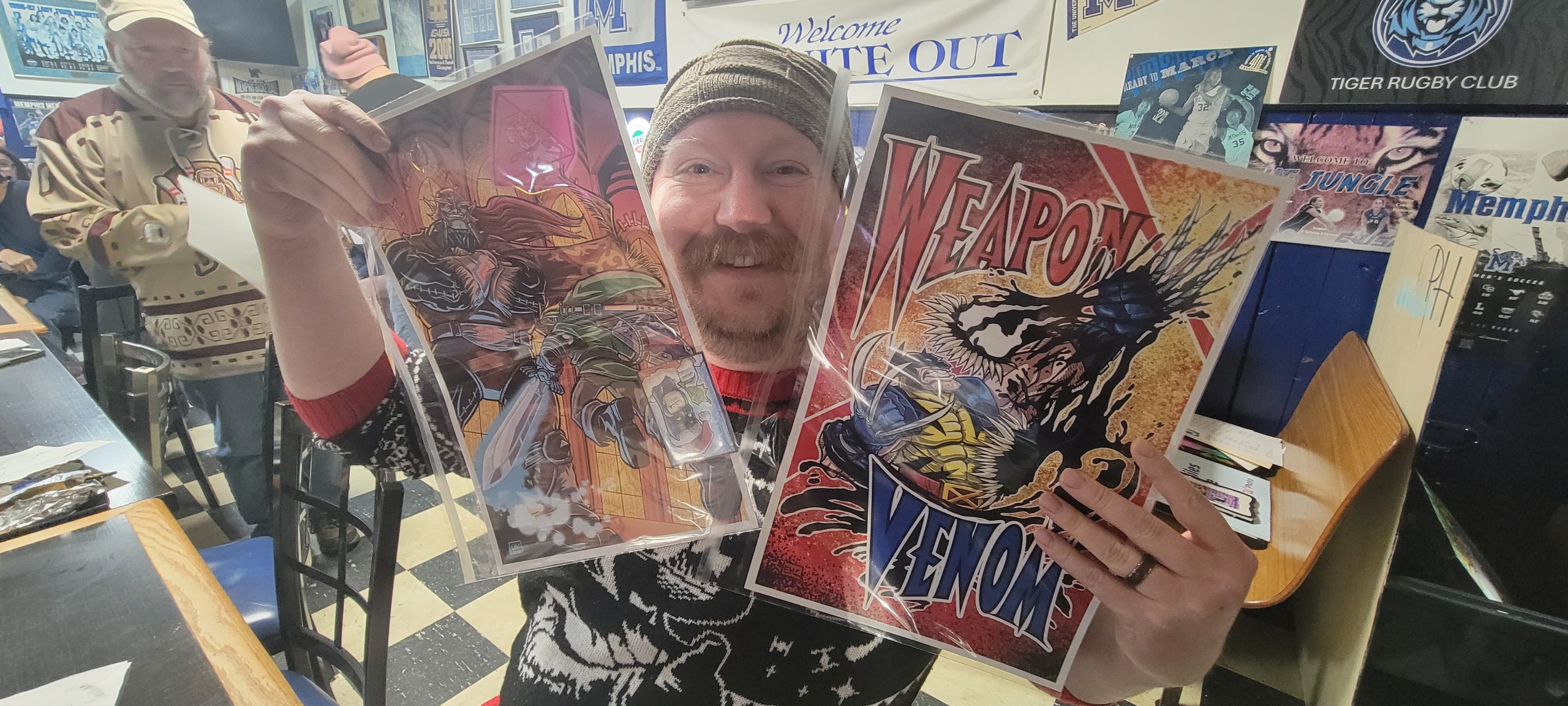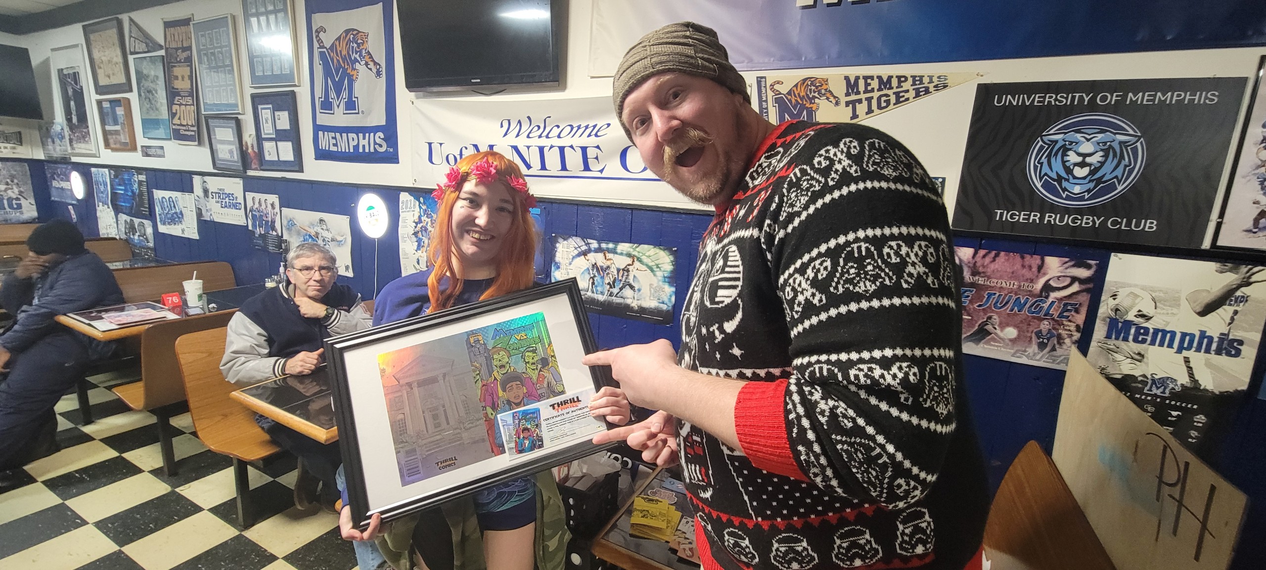 Show notes: It’s time for our annual MSCA Year End Review with the Mid-South Cartoonists Association’s president Kevin L. Williams. We grabbed some dinner at Huey’s in midtown, and then headed over to his place to record this episode. We look back on events from another busy art year for us, and we look ahead to what’s coming up for our cartooning group, and other seasonal events and holiday markets in and around Memphis. We also discuss details on the MSCA’s Monthly Dinner Gatherings at Garibaldi’s Pizza (1st Tuesday of each month from 6-8pm), our recent Annual Holiday Art Swap, the upcoming “The Art Of The Game” happening in December/January at the Memphis Jewish Community Center, our other previous art shows at Germantown Community Theatre and Playhouse on the Square, our group anthology zine, Rouge’s Gallery events, Ave Maria Home visits, the local convention scene, Con Cards, Choose 901 article, Andre L. Miller, and more. We also look back at some of the interviews I did for the 17 episodes of “Drawing Funny” in 2025 such as Holtermmonster with the Monster Market, Beale Street Monster Club’s co-founder Michael Cox, MSCA alum Mike Norton, Comics Universe owner “Lethal” Rethal Miller, Greg Cravens, Ryan “Big Daddy” Ladner, That Katie Jones, my wife Nicki Workman, and appearances on the Comic Geek Speak podcast and Geek Tank Radio show on 98.1 The Max/News Talk 989. It was definitely another busy year for all of us artists in 2025. Hope to see you around the M-Town in 2026. Be sure to slide by the many MSCA events going on around the mid-south area, and please stop by my con table and say hi, and/or hit me up to be on the podcast!