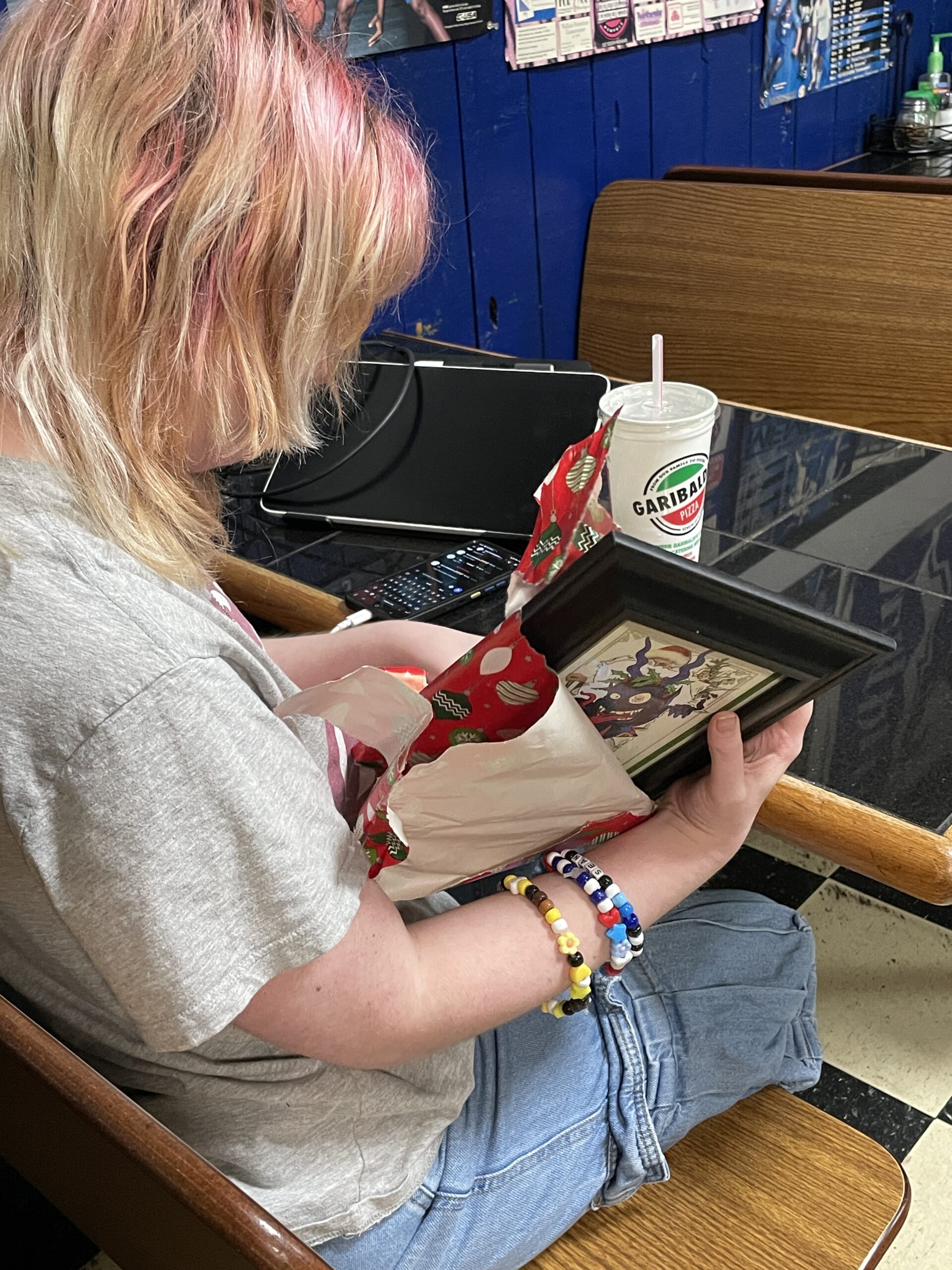 Kevin read out the rules and let folks who brought items for the art swap to pick a number to win a prize to take home.