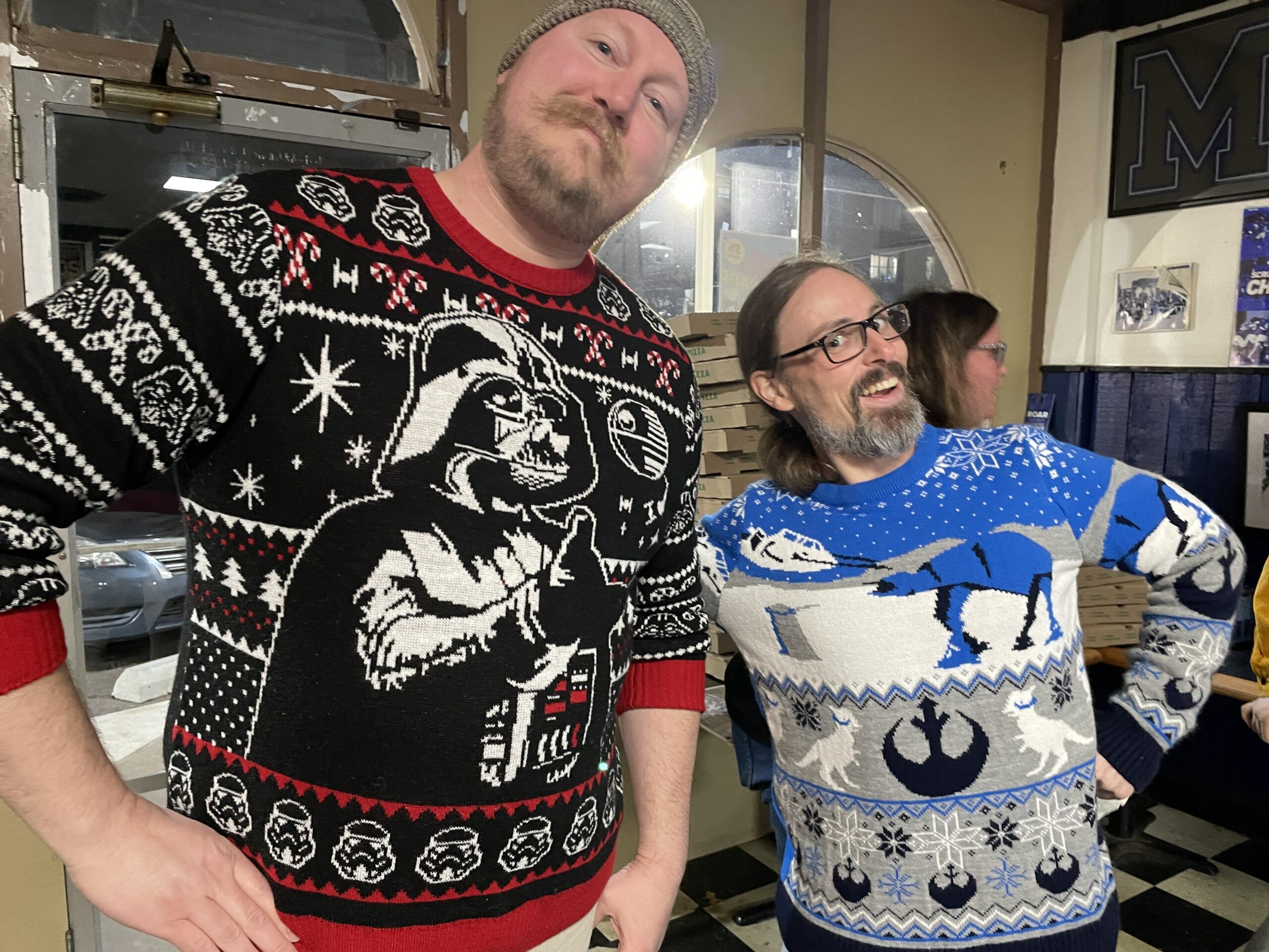 It was also the night for our MSCA Annual Holiday Art Swap, and a few members like Ryan and Eric dressed appropriately for the event.